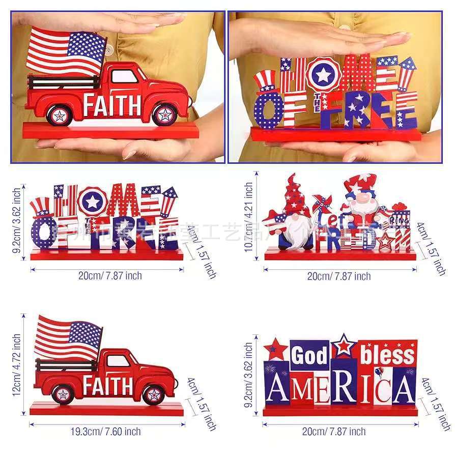 跨境独立日木制工艺品摆件 节日氛围装饰圣诞独立日木制摆件