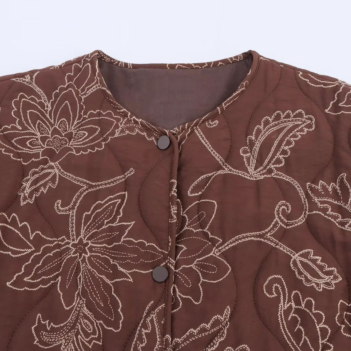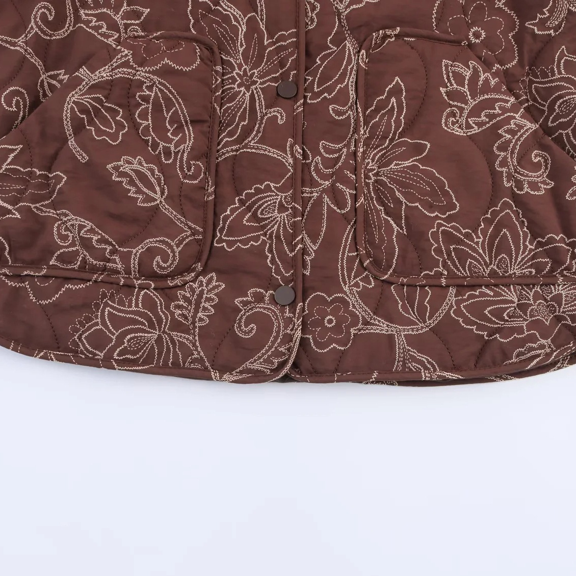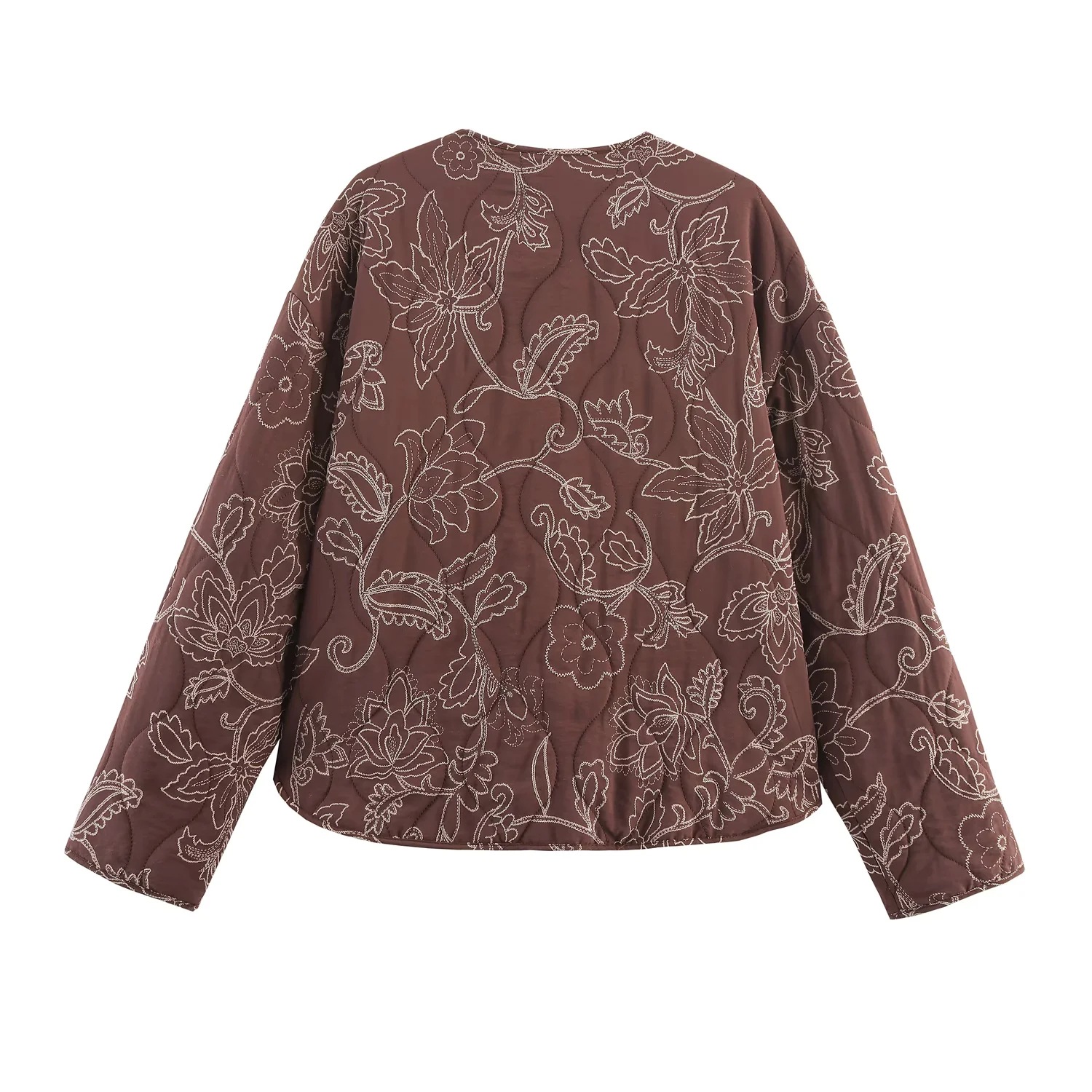 2025秋季新款欧美风跨境女装时尚复古印花圆领百搭绗缝夹克外套