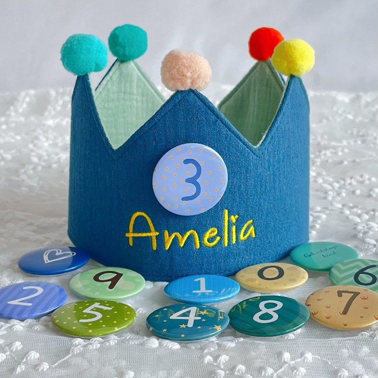 刺绣宝宝名字 生日帽派对皇冠帽 儿童摄影拍照道具宝宝周岁生日帽
