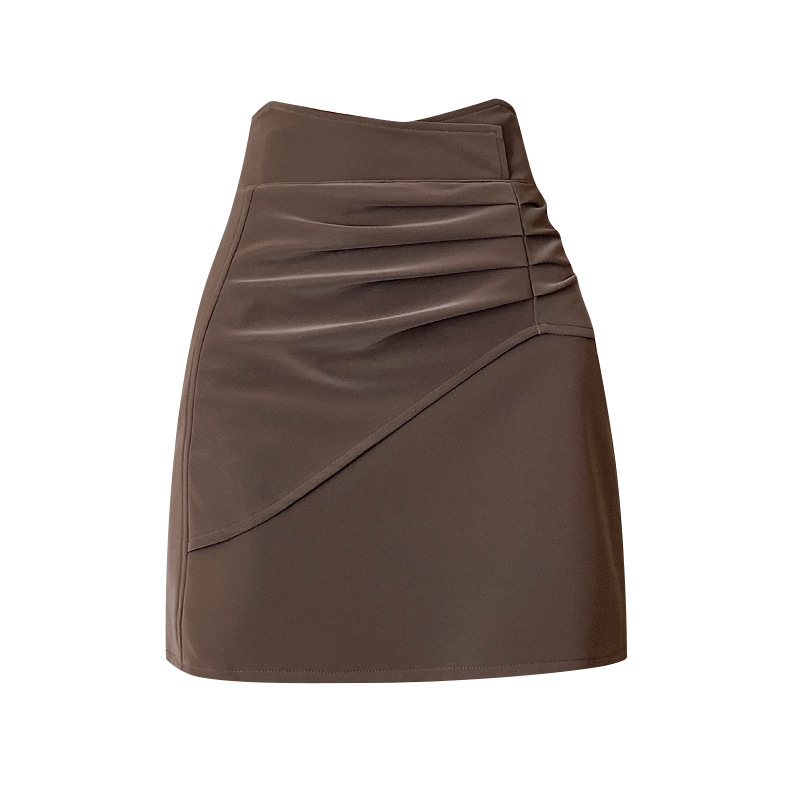 韩版 2025高腰韩版防走光雾面丝绒皮褶皱不规则a字半身包臀裙短裙