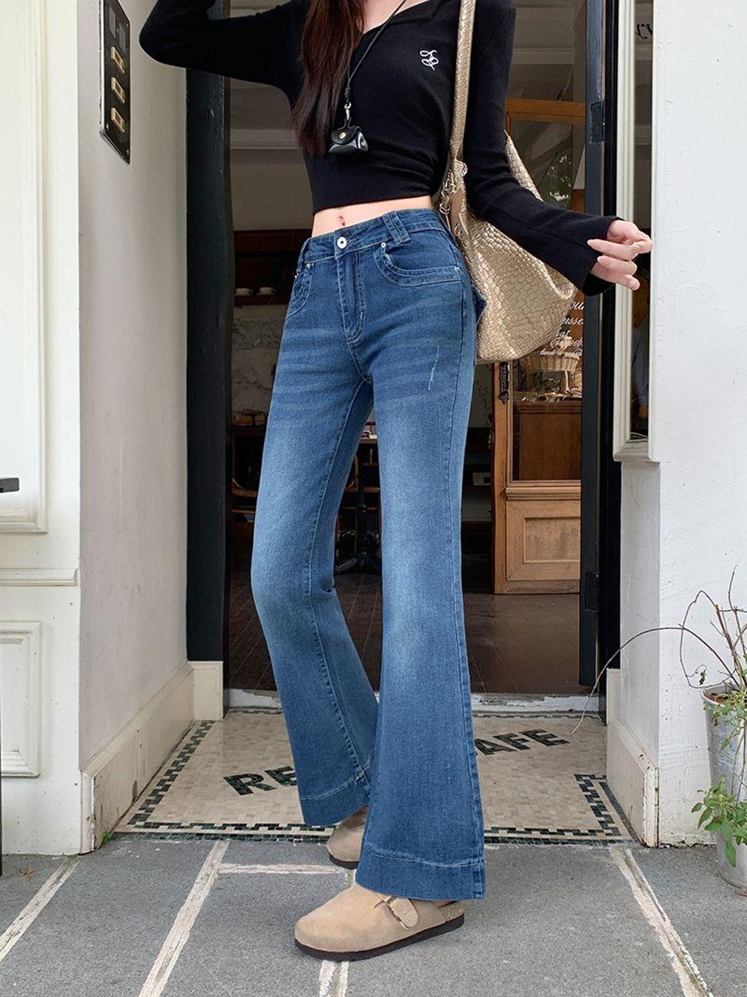 2025新款秋装美式辣妹风设计感高级感百搭高腰微喇叭直筒牛仔裤女