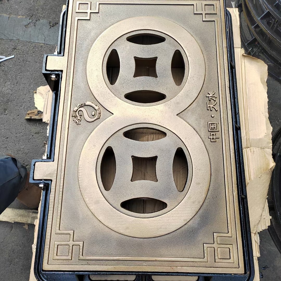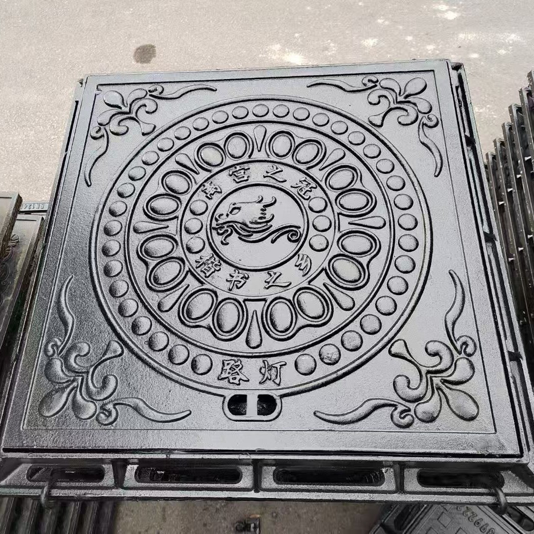 方形井盖排水沟盖板铸铁装饰篦子景区艺术盖板下水道污水井盖批发