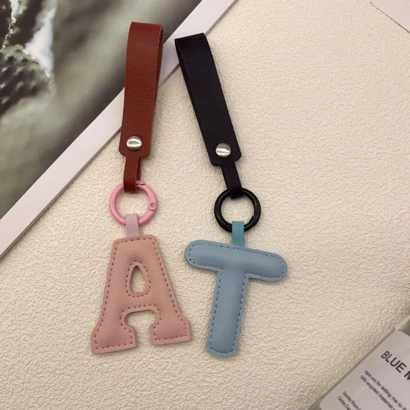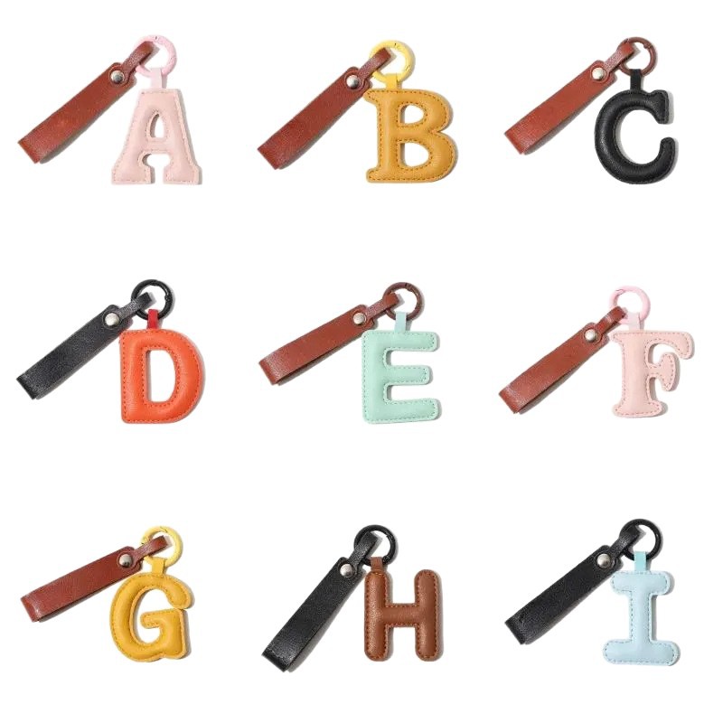 亚马逊热款diy立体英文字母皮链钥匙扣 自定义时尚26全字母钥匙链
