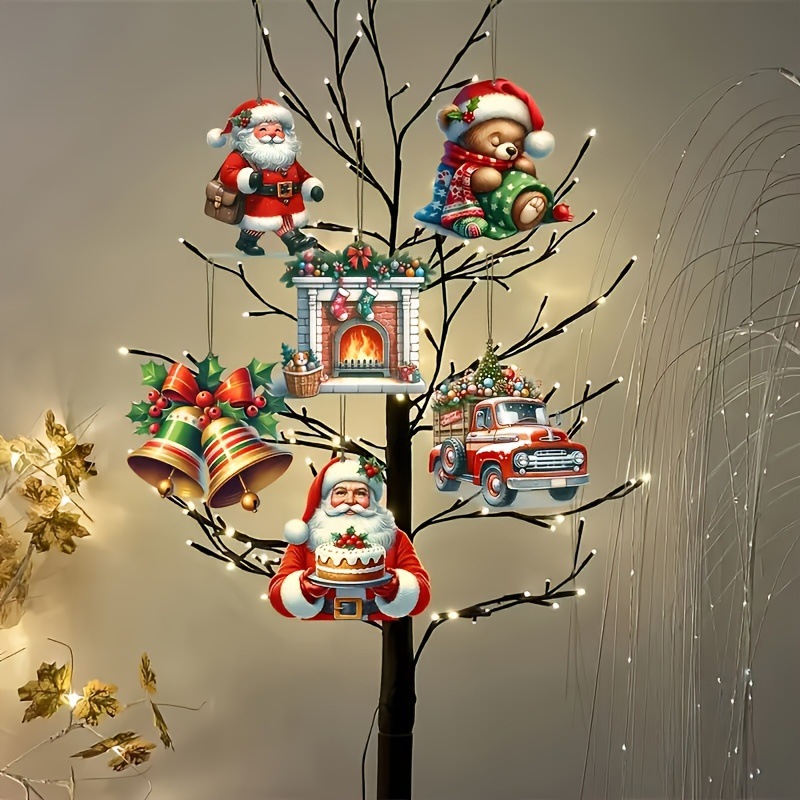 圣诞树装饰品复古圣诞装饰驯鹿红色卡车雪人圣诞老人悬挂装饰品