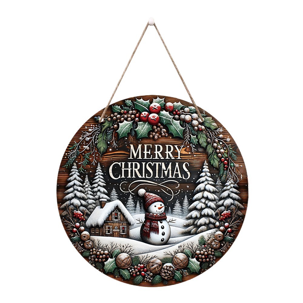 圣诞快乐木制挂件雪人木屋图案冬季圣诞节礼物家居牌匾门装饰门牌
