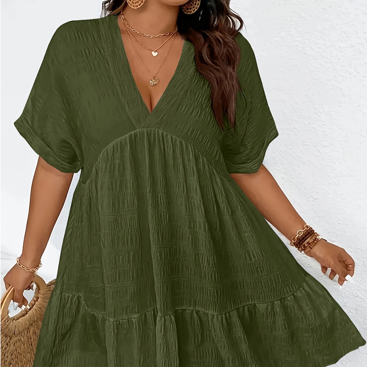 2025跨境亚马逊TEMU新款女式夏季休闲深V领短袖宽松连衣裙