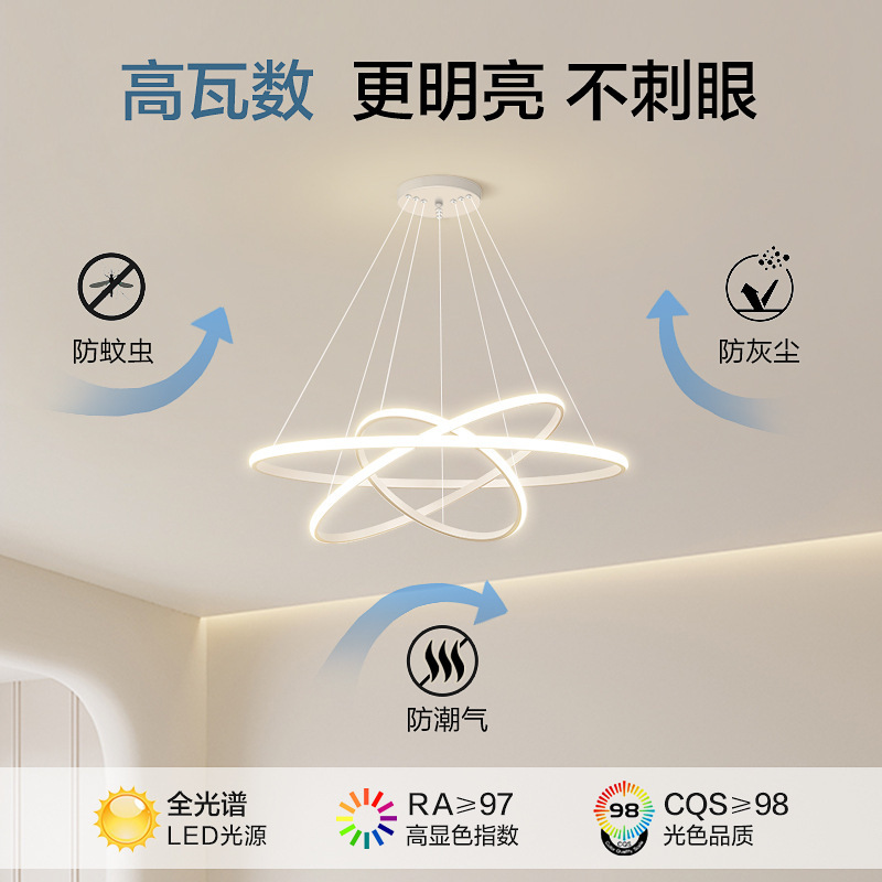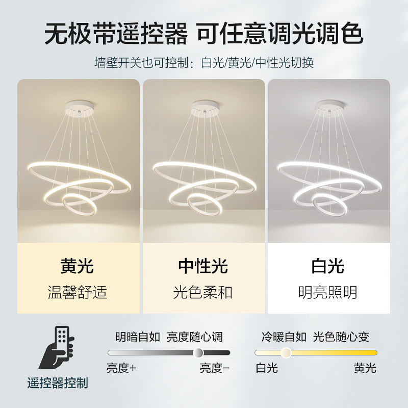 灯光颜色 | 3个圈3球直径90厘米无极遥控-178瓦:2米吊线 | 灯光颜色 | 3个圈-直径55厘米白光-68瓦 |