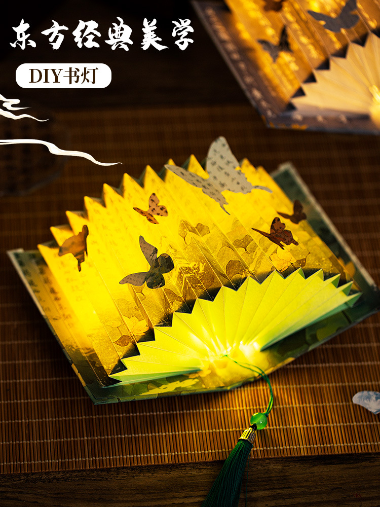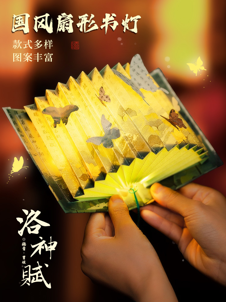 洛神赋书灯折叠扇形书灯古风LED氛围感小夜灯高级感中秋节DIY手工