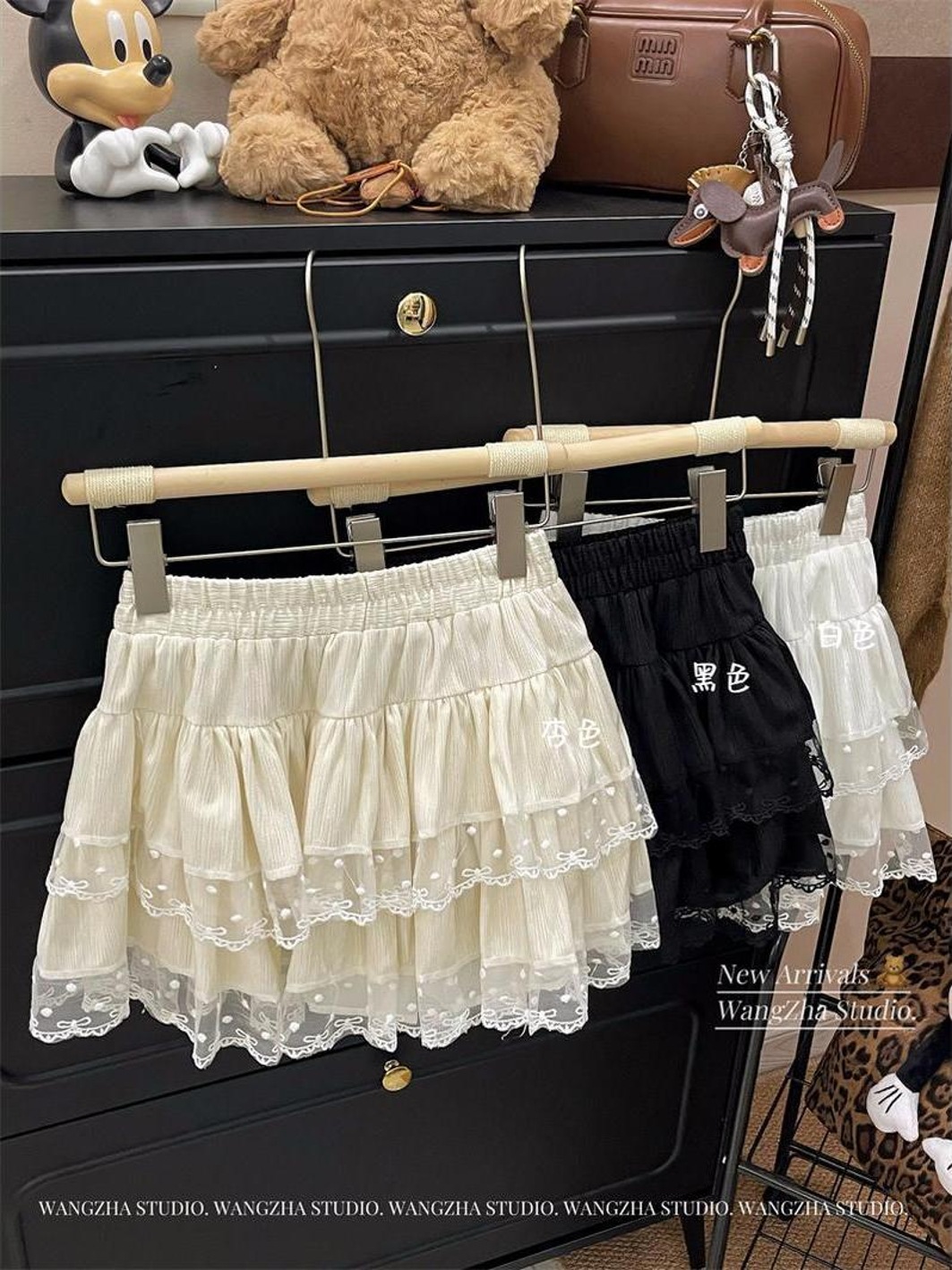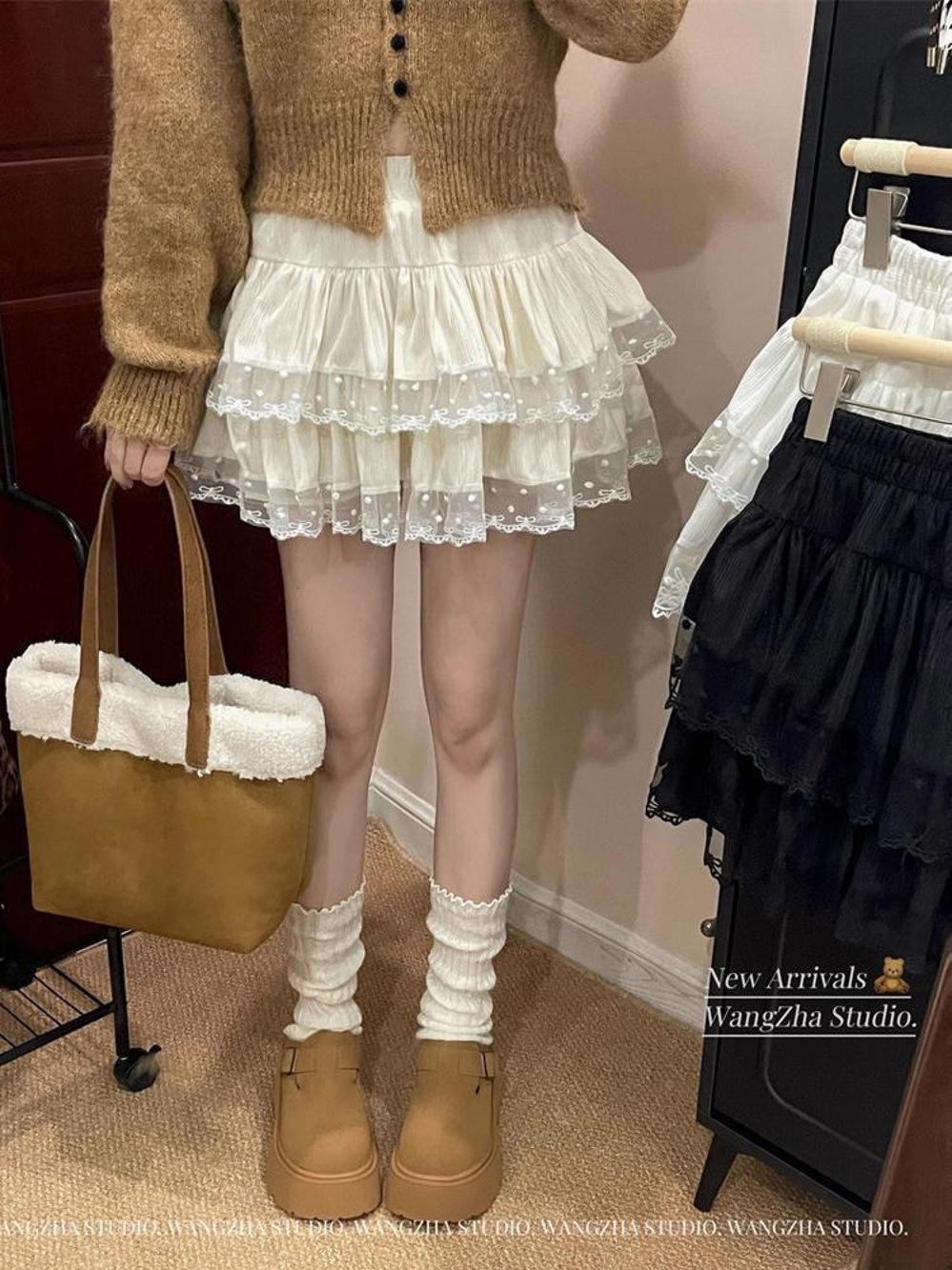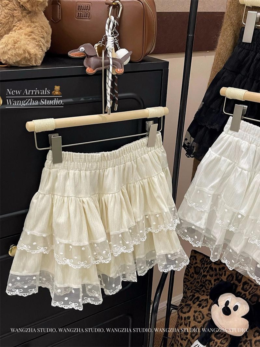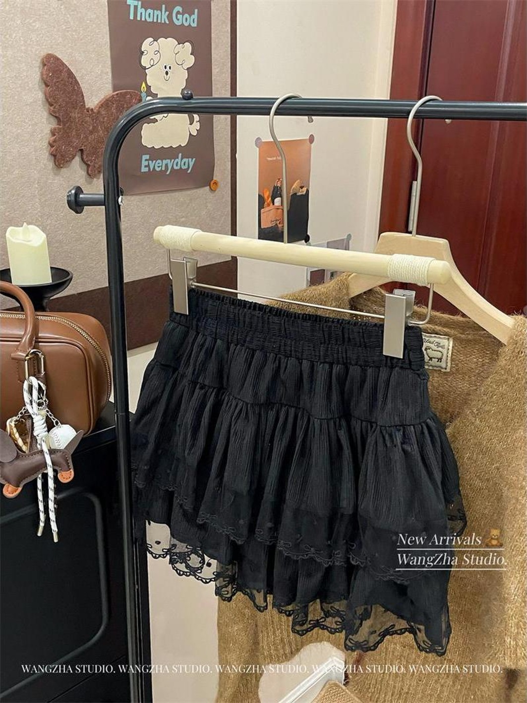 2025新款秋装甜美风设计感高级感高腰蕾丝拼接百搭蛋糕裙半身裙女
