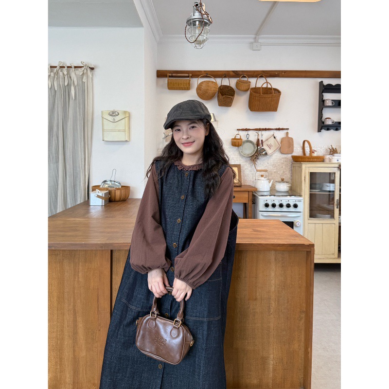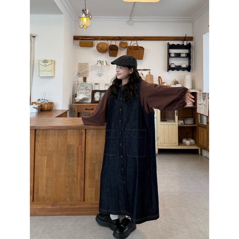 2025新款慵懒风套装纯色气质长袖衬衫女秋季牛仔背心连衣裙两件套