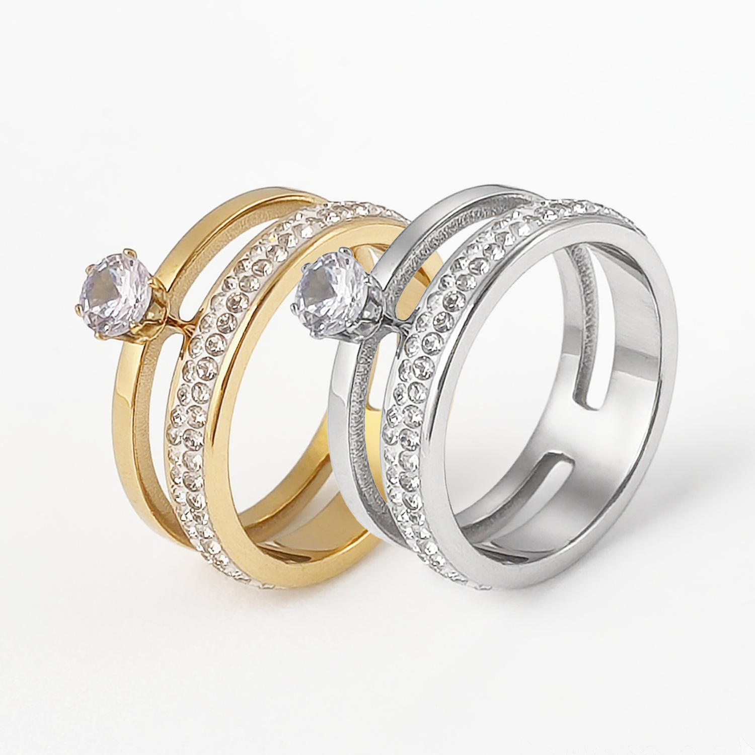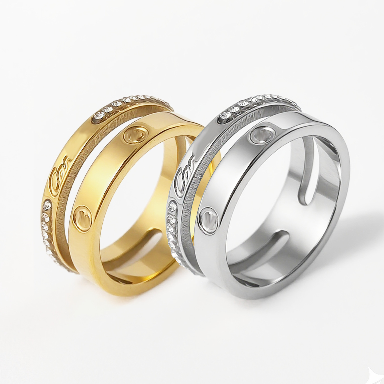 欧美跨境卡家钛钢戒指不掉色饰品镶钻排钻指环时尚手饰首饰配件
