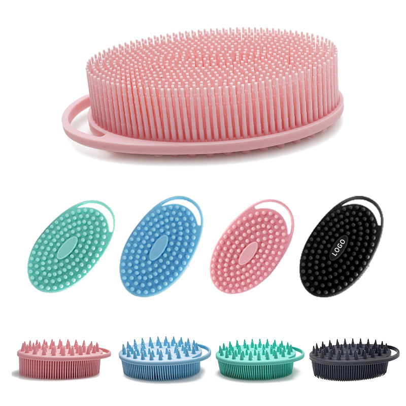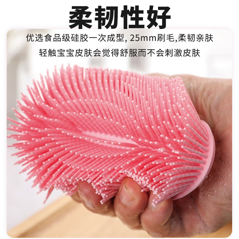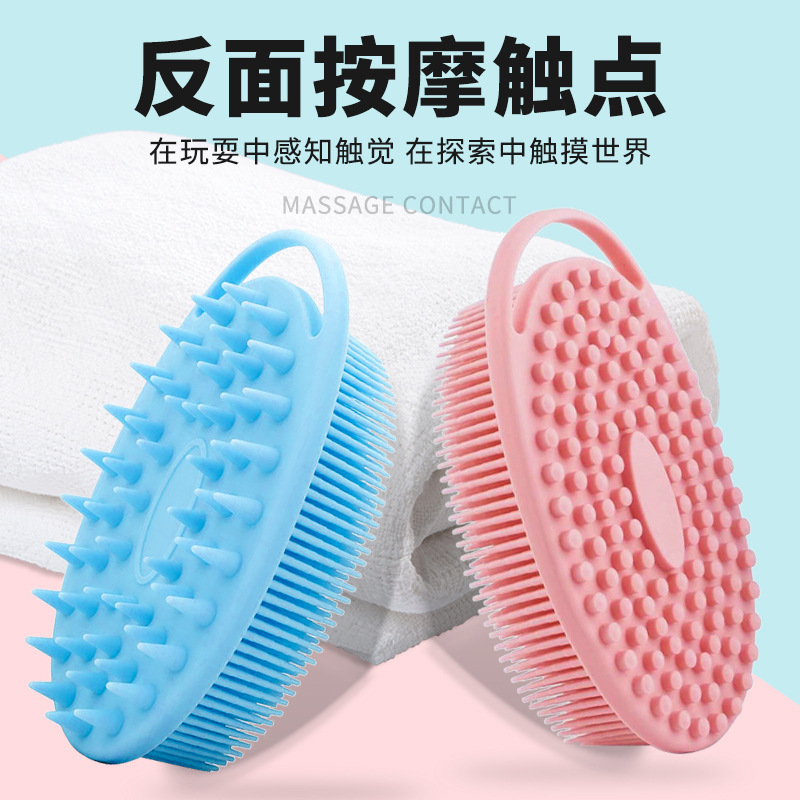 跨境硅胶触觉刷便携儿童洗头刷宝宝感统触觉训练刷硅胶挂钩洗澡刷