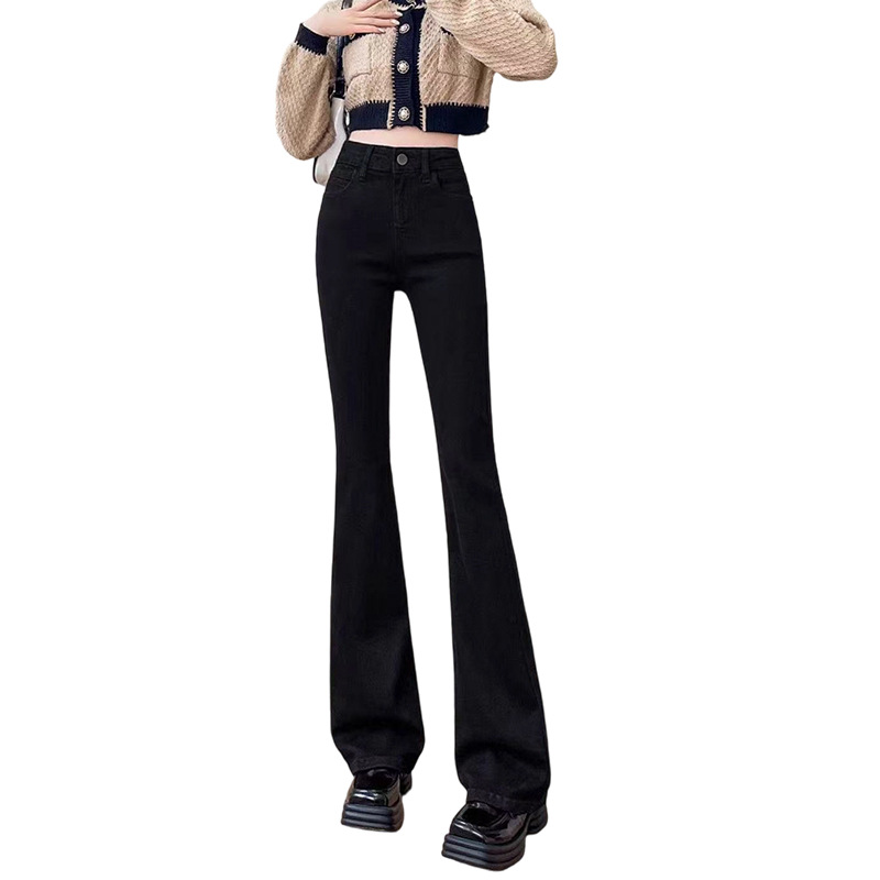 黑色微喇裤牛仔裤女 春秋新款小个子高腰显瘦显腿长大码牛仔长裤