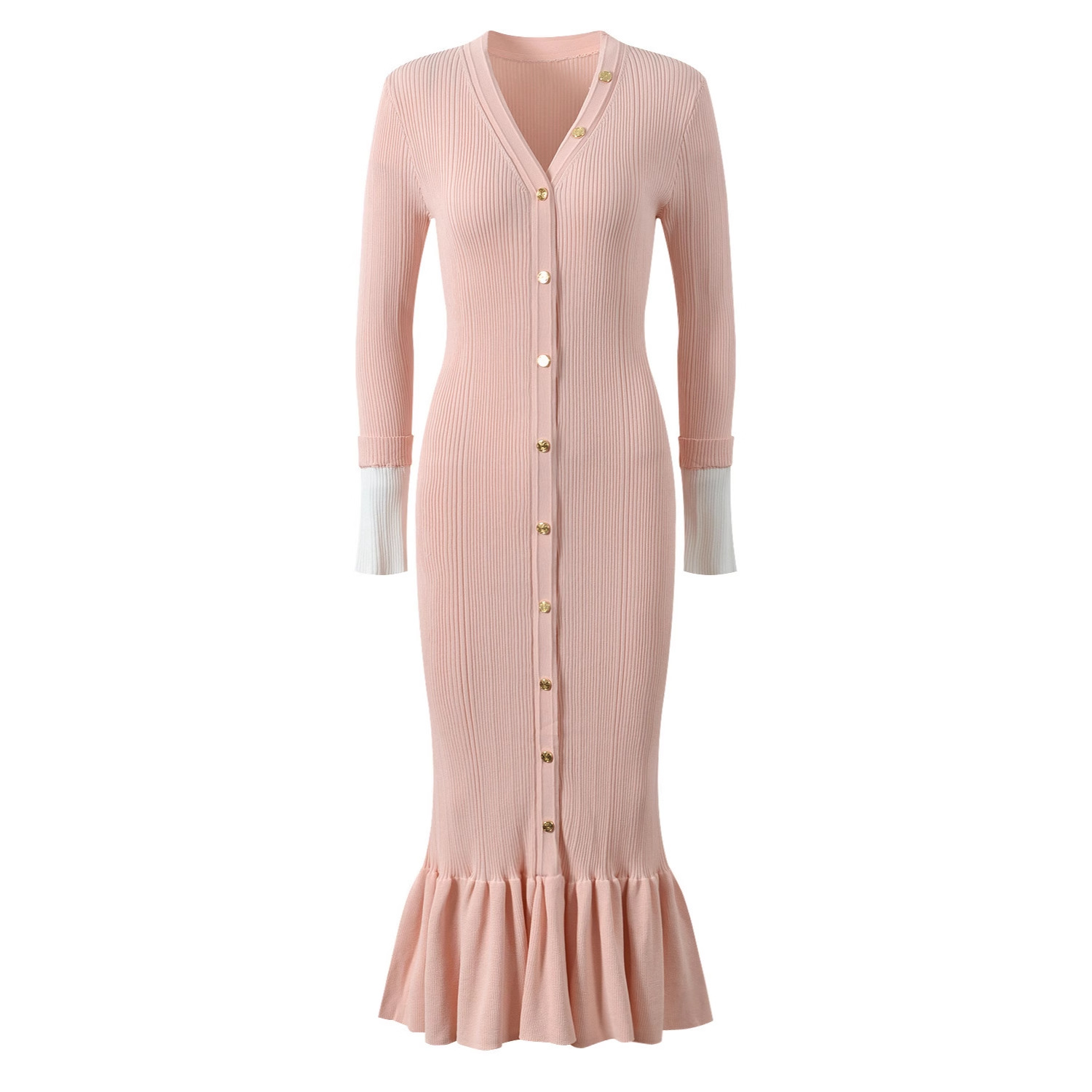 1 | 大量现货2025春秋冬新款名媛气质V领单排扣修身显瘦连衣裙优雅长裙 | 跨境风格类型 | 气质优雅 |