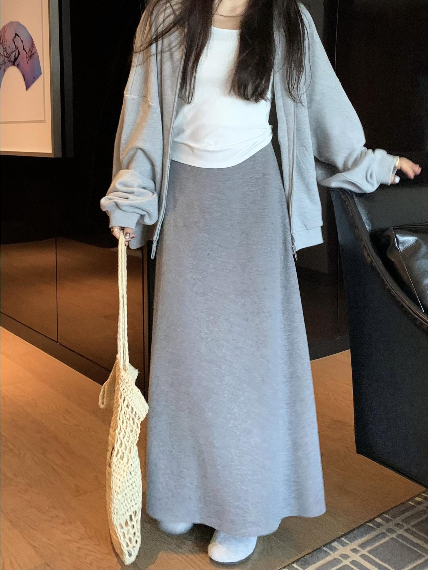 2025新款秋装韩系设计感高级感百搭高腰A字裙大摆裙宽松半身裙女