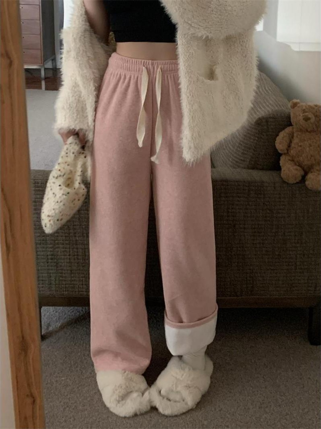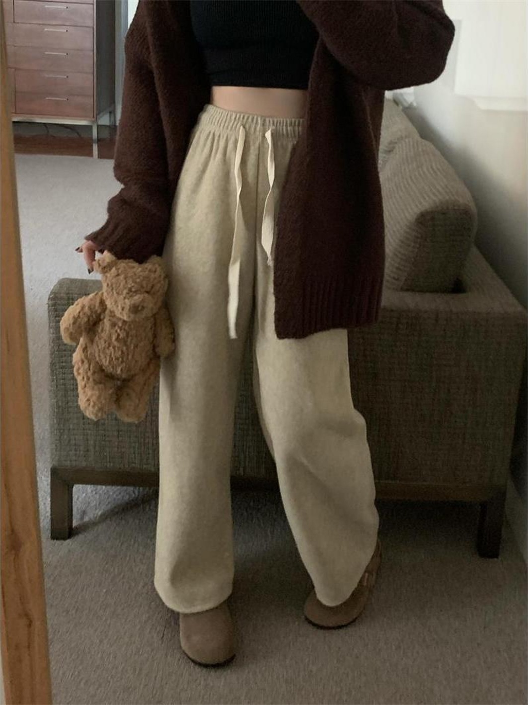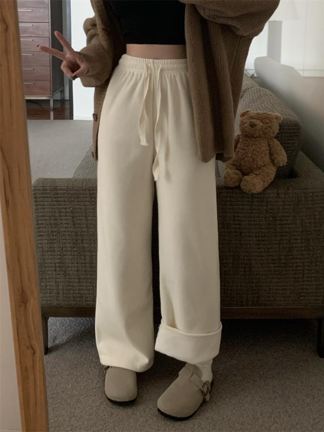 加绒加厚休闲裤2025新款秋装韩系时尚高腰显瘦阔腿裤糯米裤女chic