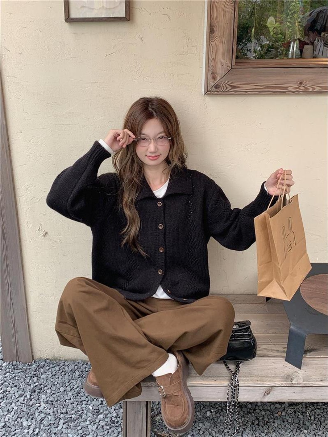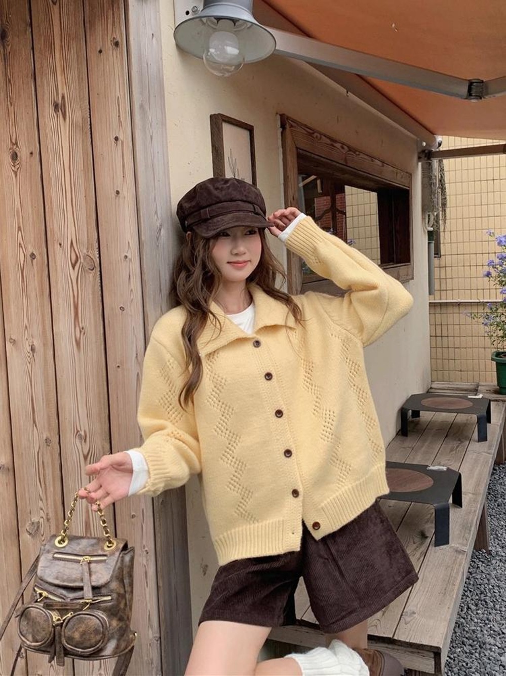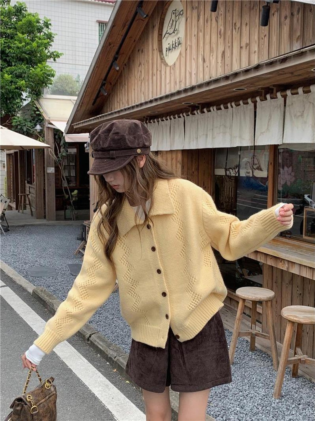复古镂空长袖针织开衫2025新款秋装百搭翻领设计感小众毛衣外套女