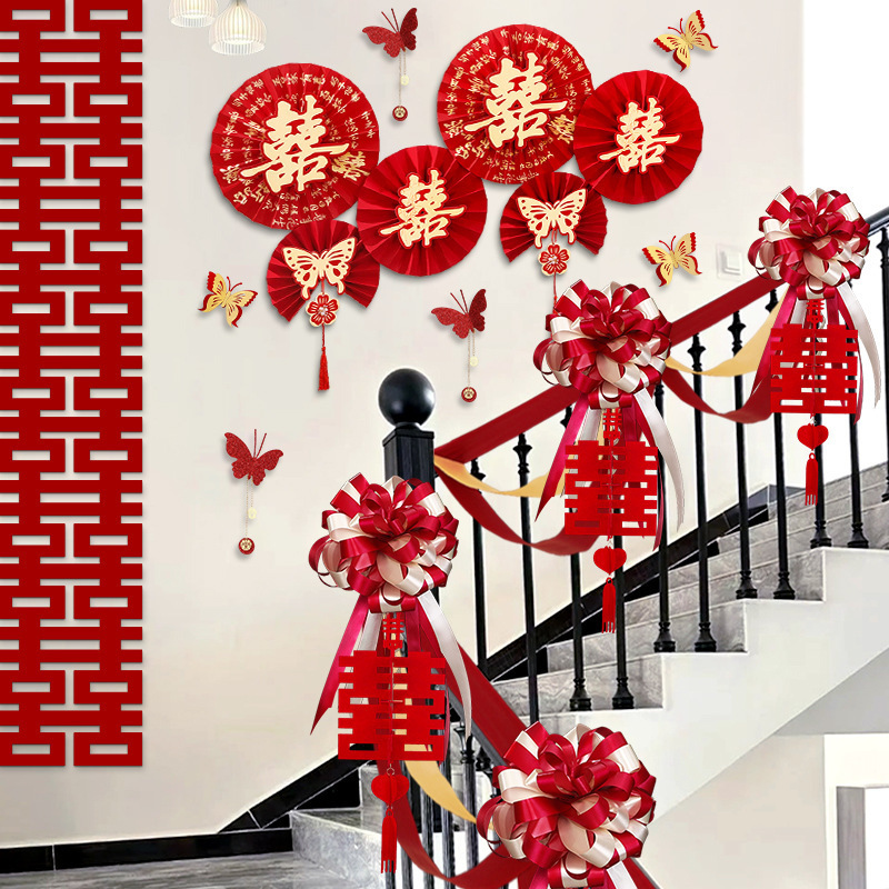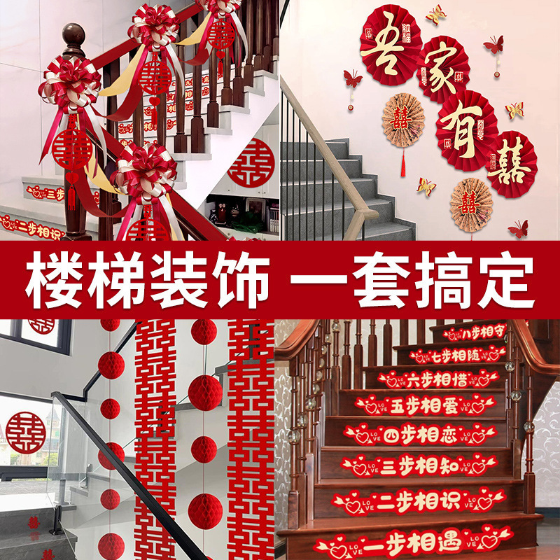 颜色 | 楼梯装饰套装【喜结良缘】 | 颜色 | 楼梯扶手背景装饰C |