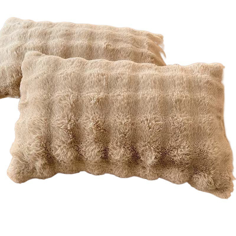 ins兔兔泡泡绒枕套-耐脏透套轻奢牛奶绒枕头套一对装平纹简约色织