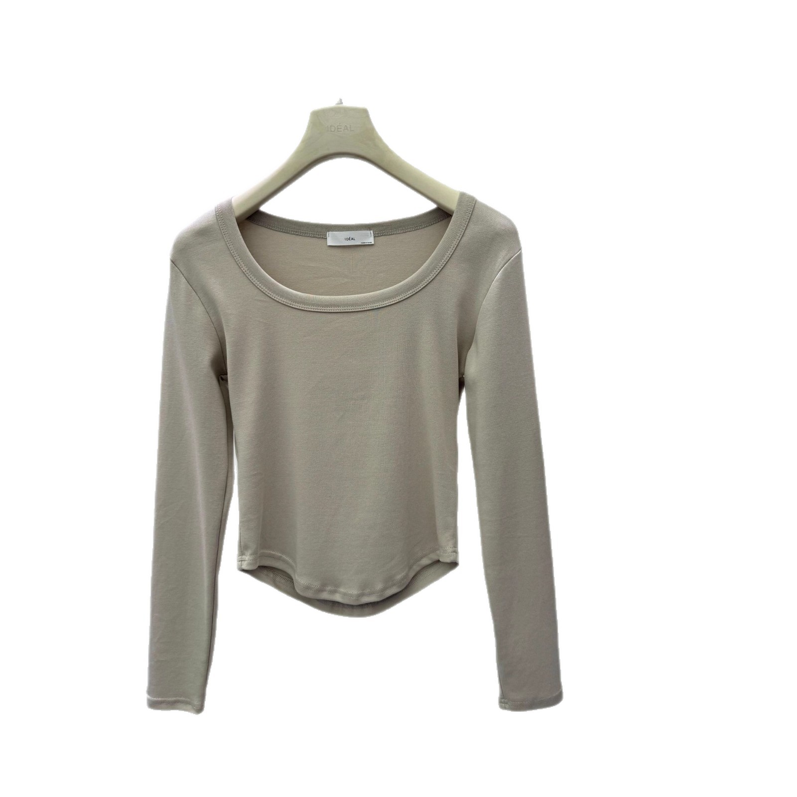 法式大圆领正肩长袖t恤女内搭短款上衣修身打底衫秋季新款 I5240