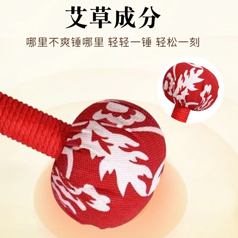 新款红色加长款艾草按揉锤 肩颈膝盖经络腰椎敲打按摩神器批发