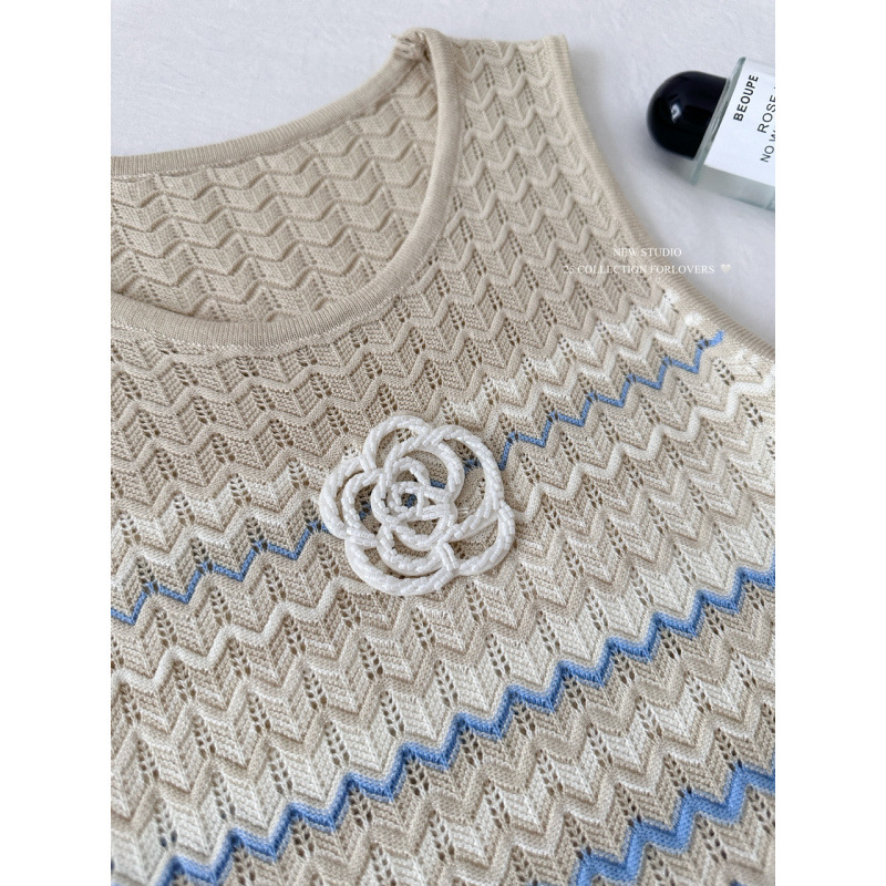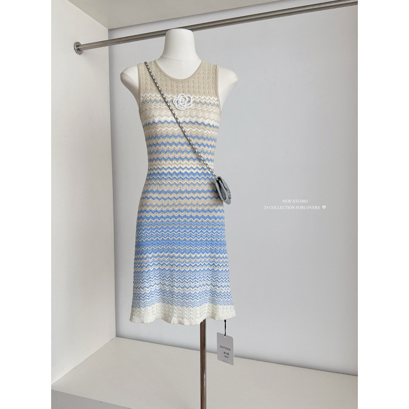 渐变条纹小香风针织连衣裙女2025新款气质中长裙子