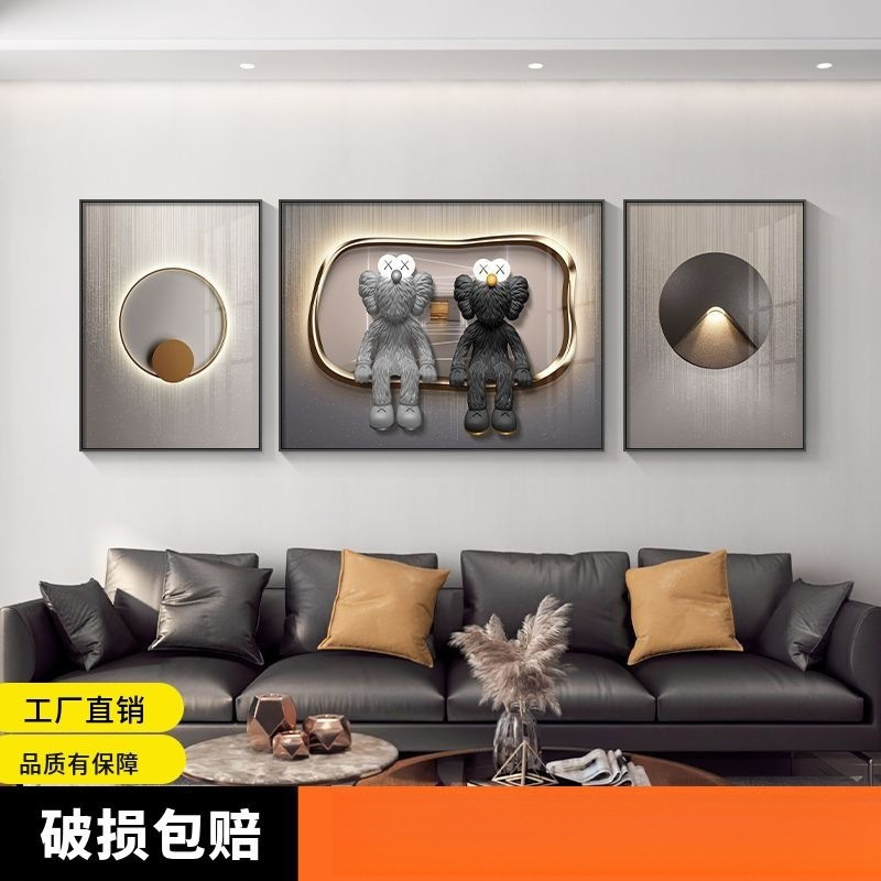 客厅装饰画现代简约沙发背景墙画北欧式三联壁画晶瓷有框抽象挂画