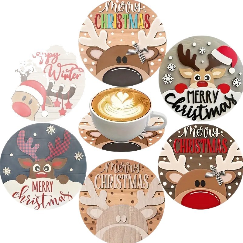 跨境热销木质工艺品小鹿雪人餐厅耐热防滑饮料垫家居和派对装饰