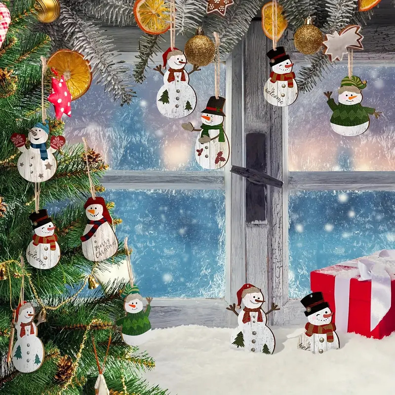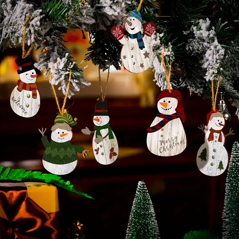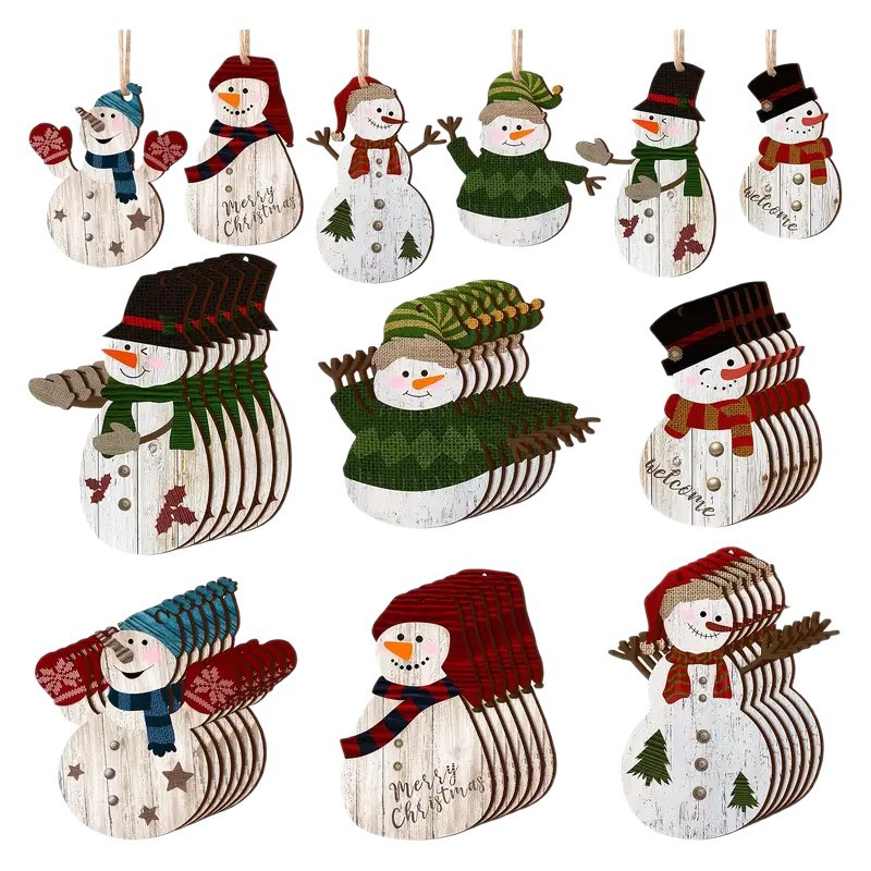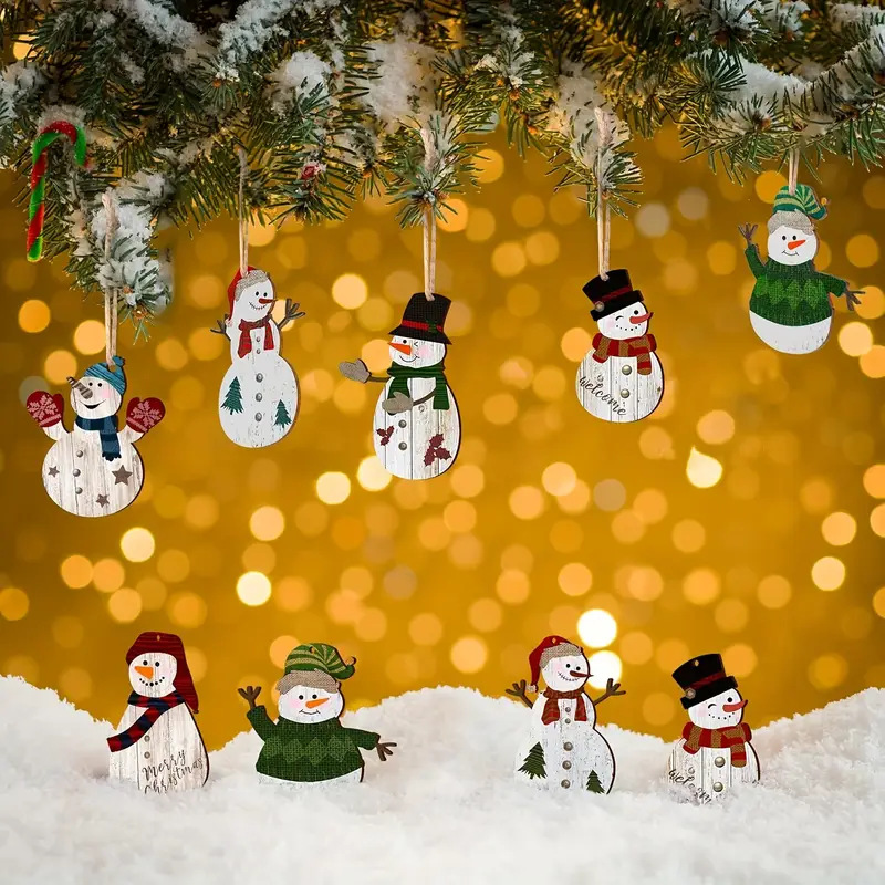 复古跨境新品圣诞木制雪人装饰品圣诞木制雪人悬挂标志装家居派对