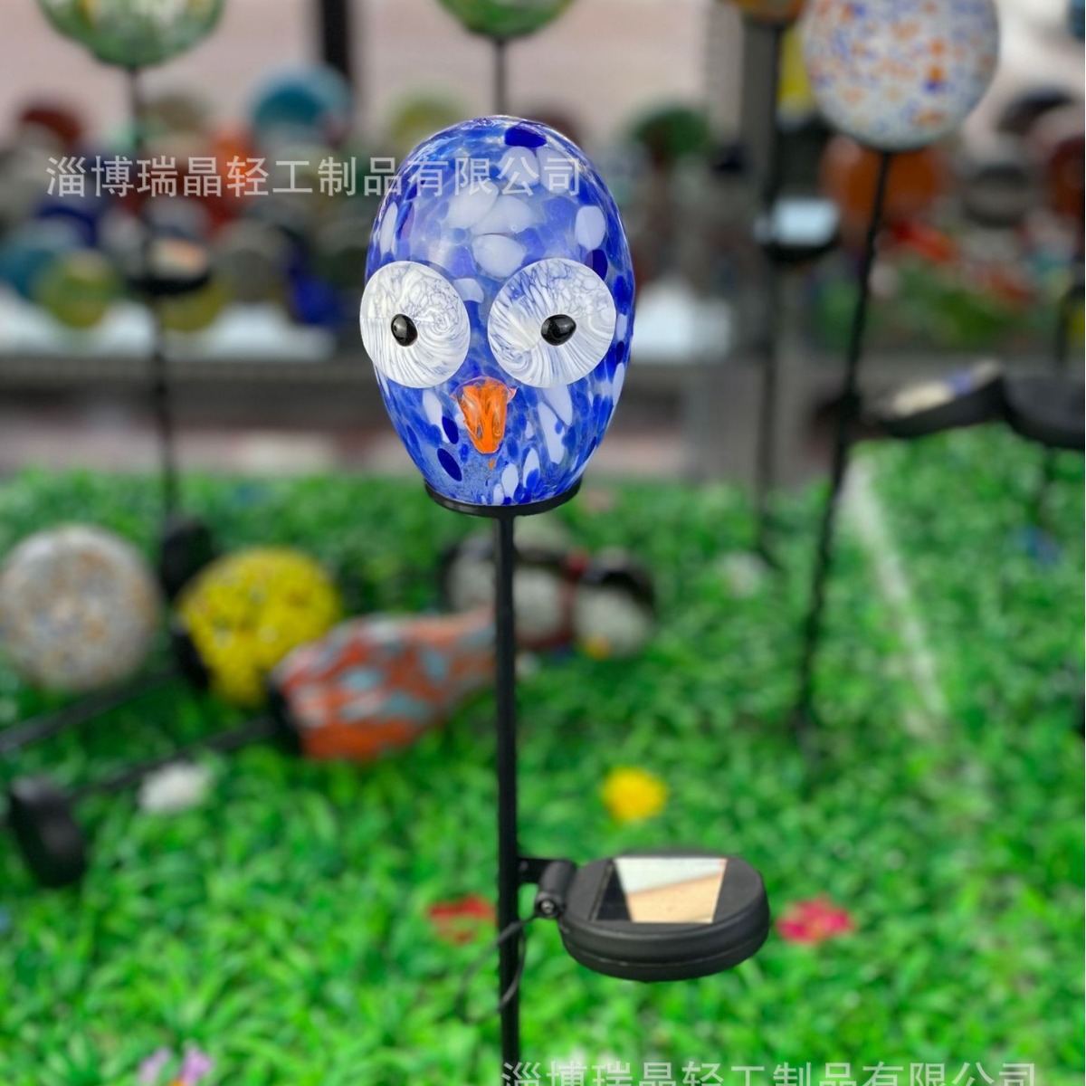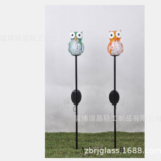 跨境电商太阳能草坪灯 琉璃猫头鹰庭院地插小夜灯 花园灯