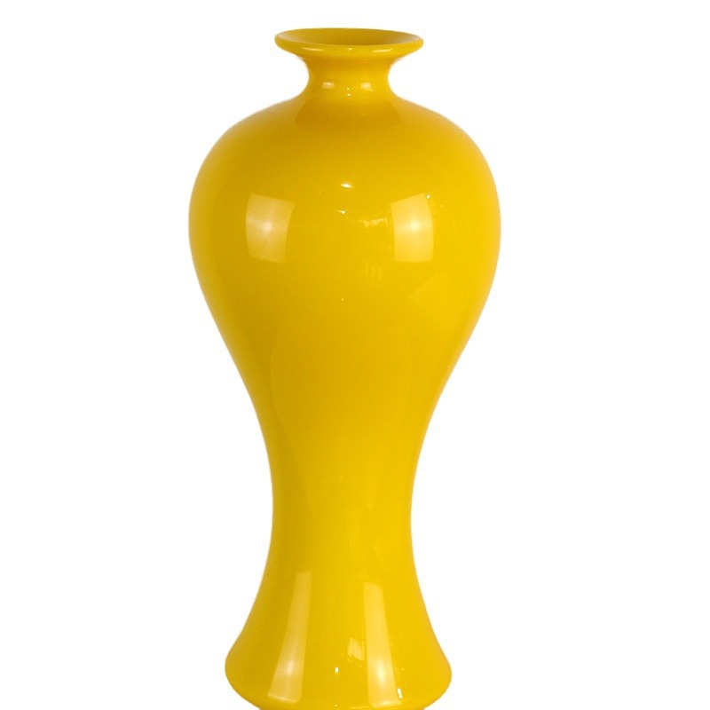淄博博山琉璃摆件鸡油黄花瓶 皇家器皿摆件工艺品摆件纯手工创意