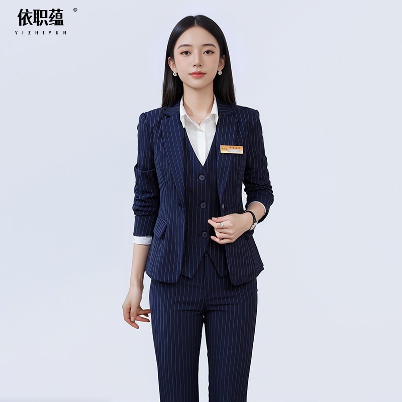 干练西装套装女马甲三件套职场时尚通勤正装律师西服条纹春秋套装