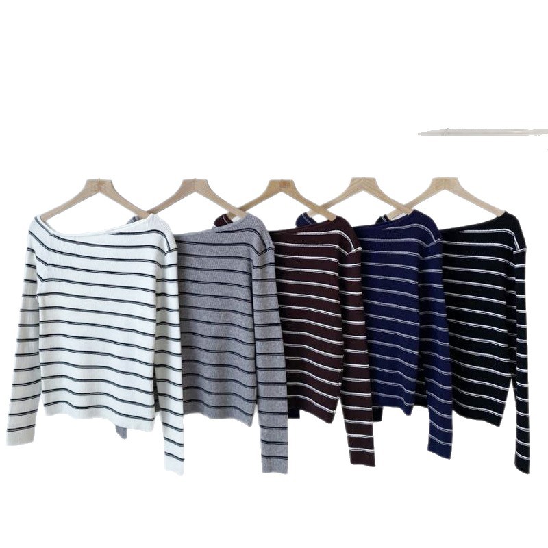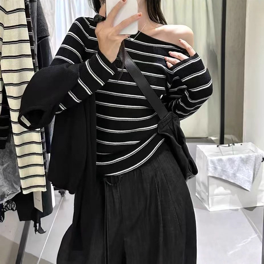 2025秋季新款设计感条纹上衣气质显瘦修身长袖针织衫高级感毛衣女