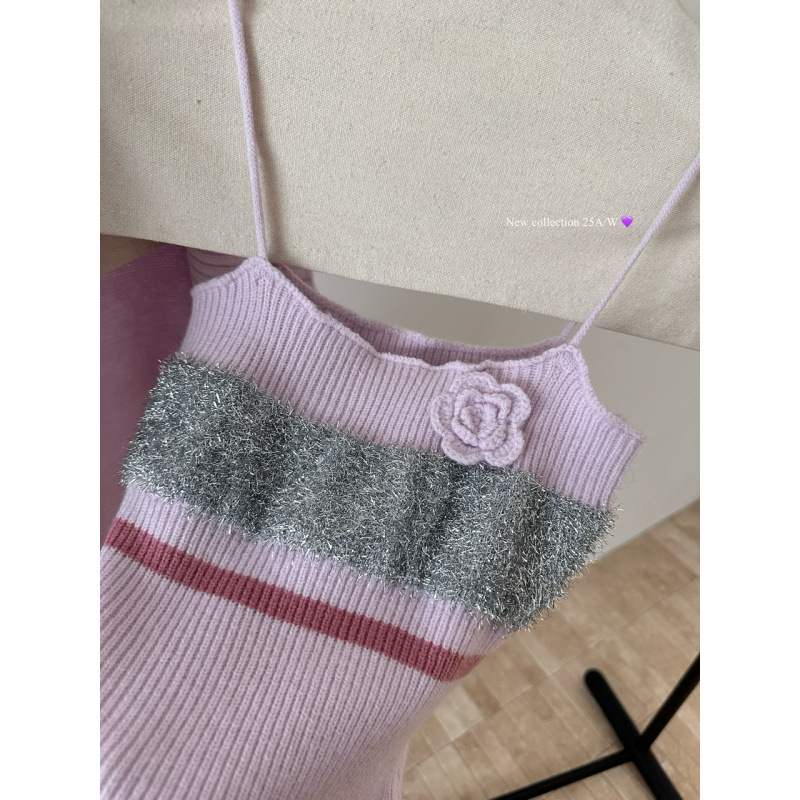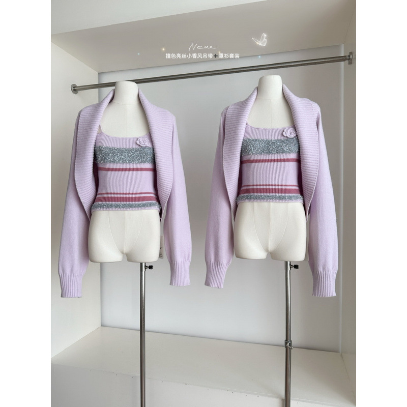2025撞色羊毛亮丝小香风吊带 慵懒长袖针织外套毛衣罩衫上衣套装