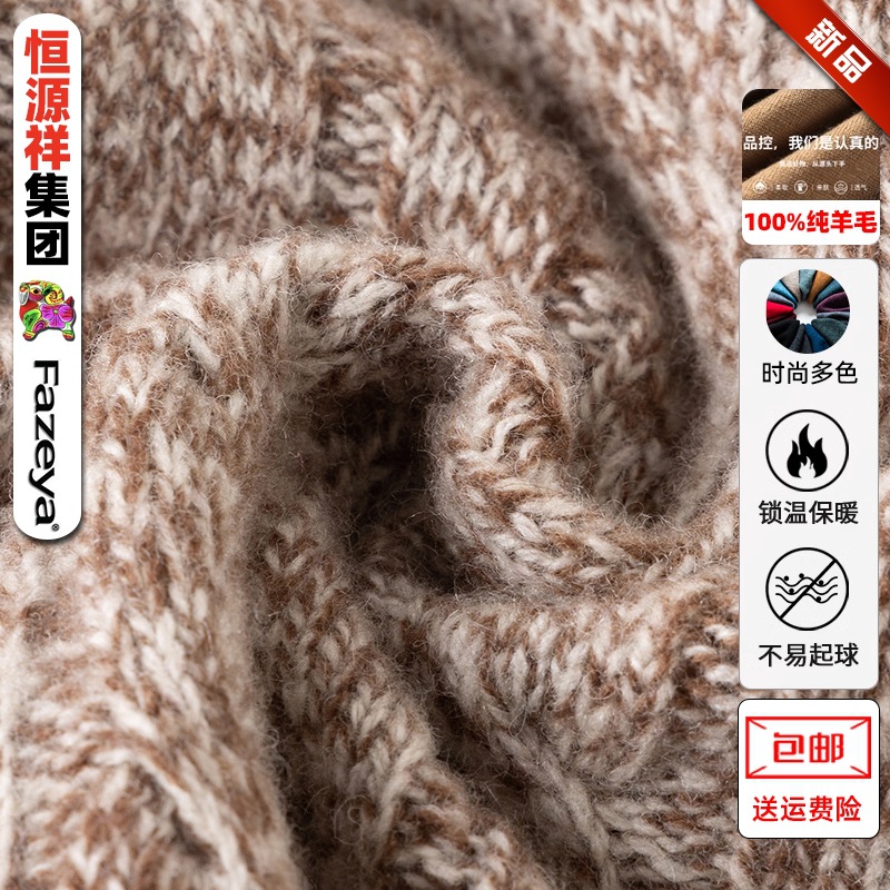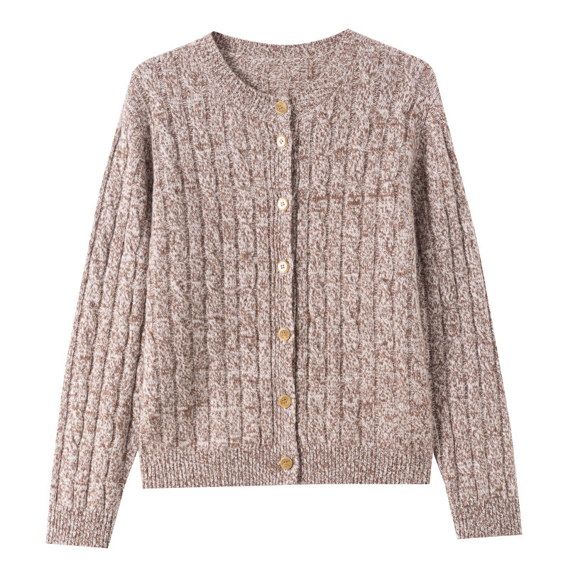 秋冬季新款纯羊毛开衫女圆领麻花加厚针织外套毛衣恒源祥羊毛上衣