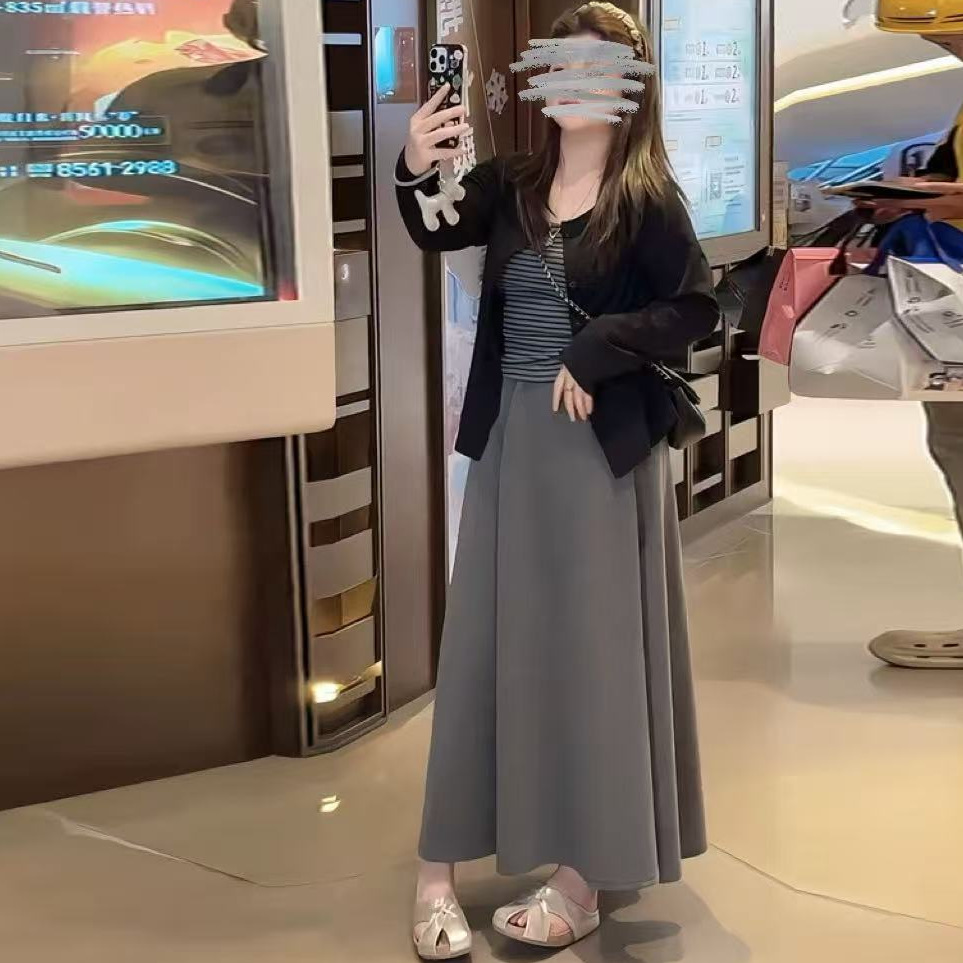 秋季新款条纹吊带长袖开衫外衣显瘦半身裙三件套黑色三件套其他