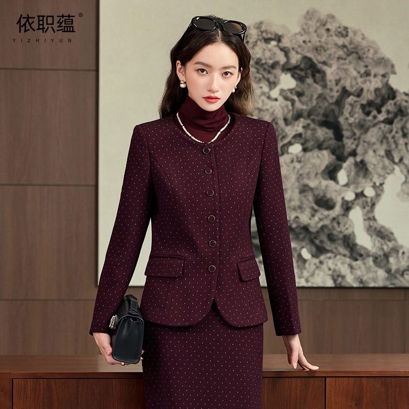 品牌 | 依职蕴 | 颜色 | 酒红西装+裙 |