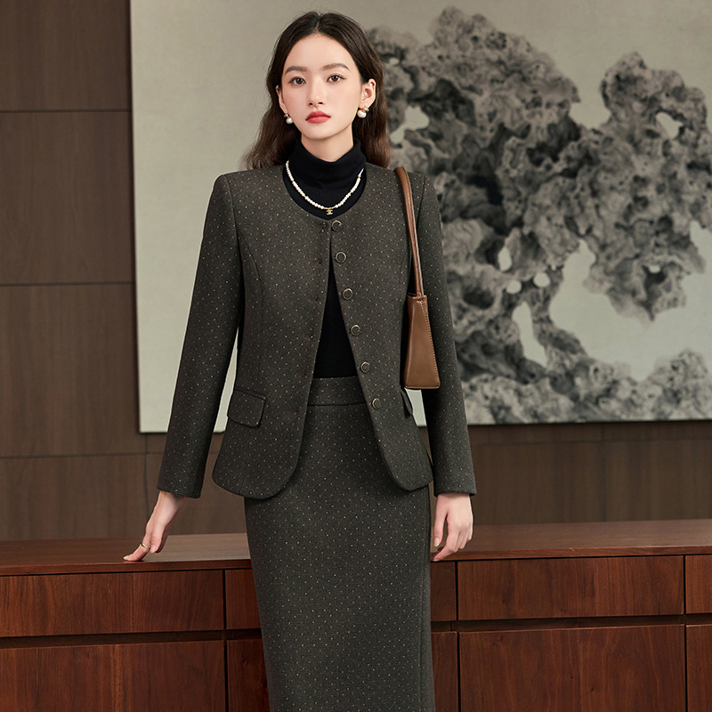颜色 | 宝蓝西装+裙 | 颜色 | 咖色西装+裙 |