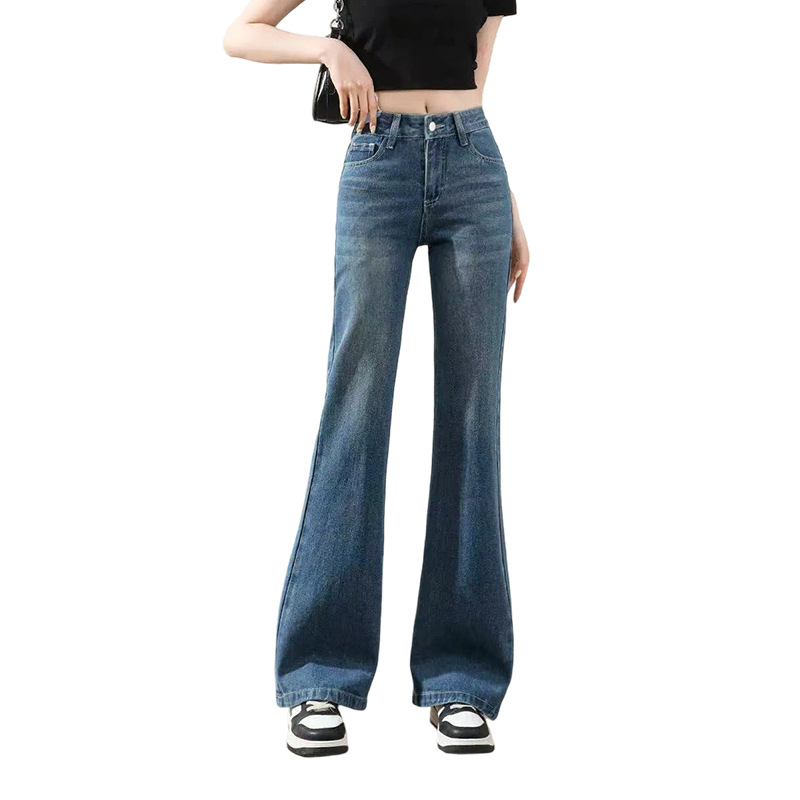 复古高腰微喇裤牛仔裤女秋季新款小个子休闲牛仔长裤微喇裤马蹄裤