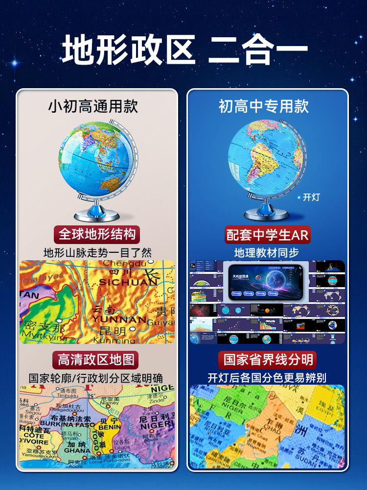 颜色 | 初高中生专用【32CM无灯】政区/地形+刻度+76大专题AR地理课程+儿童AR | 颜色 | 初高中生专用【25CM充电灯】政区/地形+刻度+76大专题AR地理课程+儿童AR |