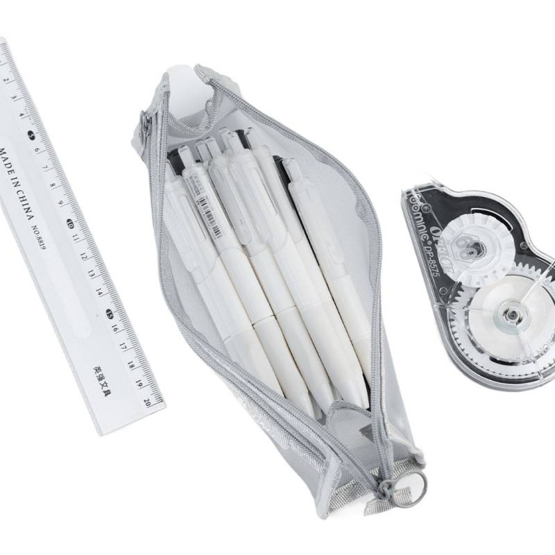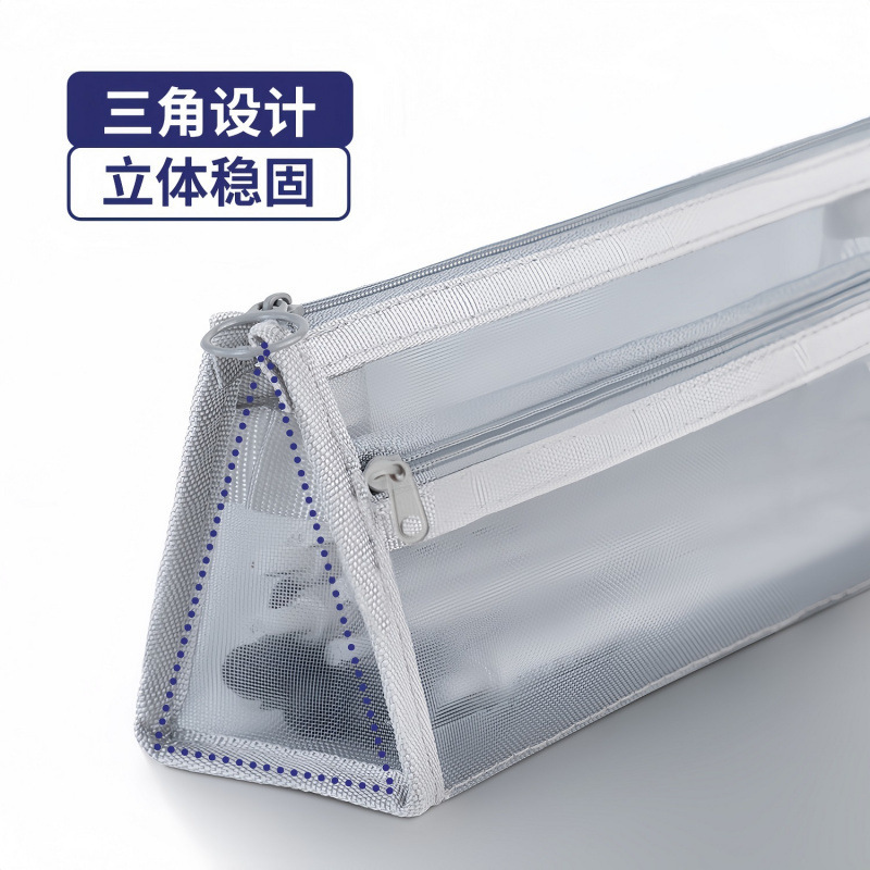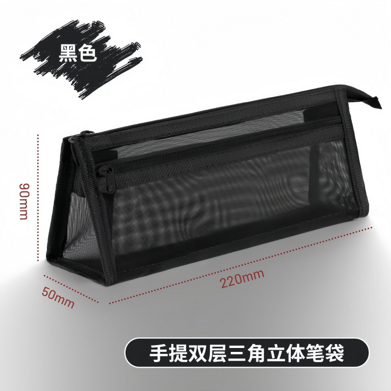 颜色 | 4个双层立体丨黑+白+灰+深 | 收容量 | 三角透明网纱笔袋 |