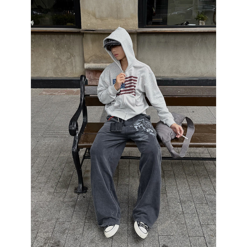 2025新款学生印花连帽拉链秋冬加厚开衫卫衣男女休闲宽松运动外套