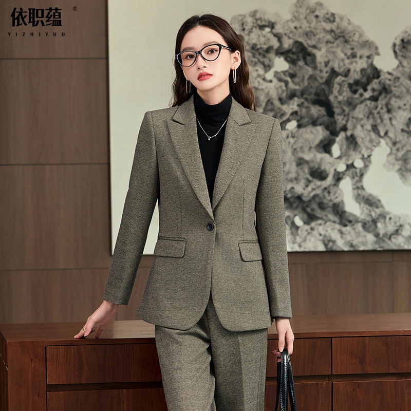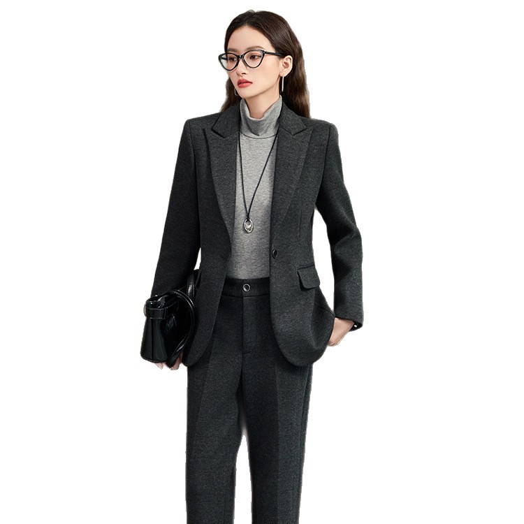 2025秋冬新款厚实高级感灰色职业西装套装女轻奢风职业装女套装