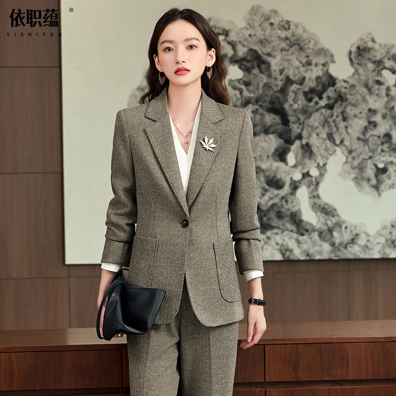 气质秋冬新款厚实高级感经理律师面试正装商务休闲人字纹西装套装