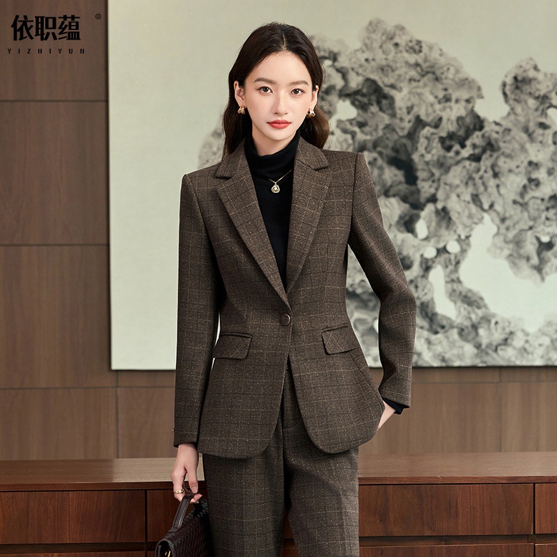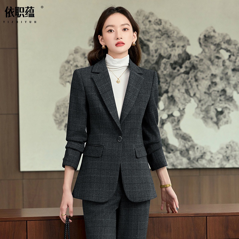 2025秋冬新款厚实高级感灰色格子女轻奢风职业装女套装休闲套装