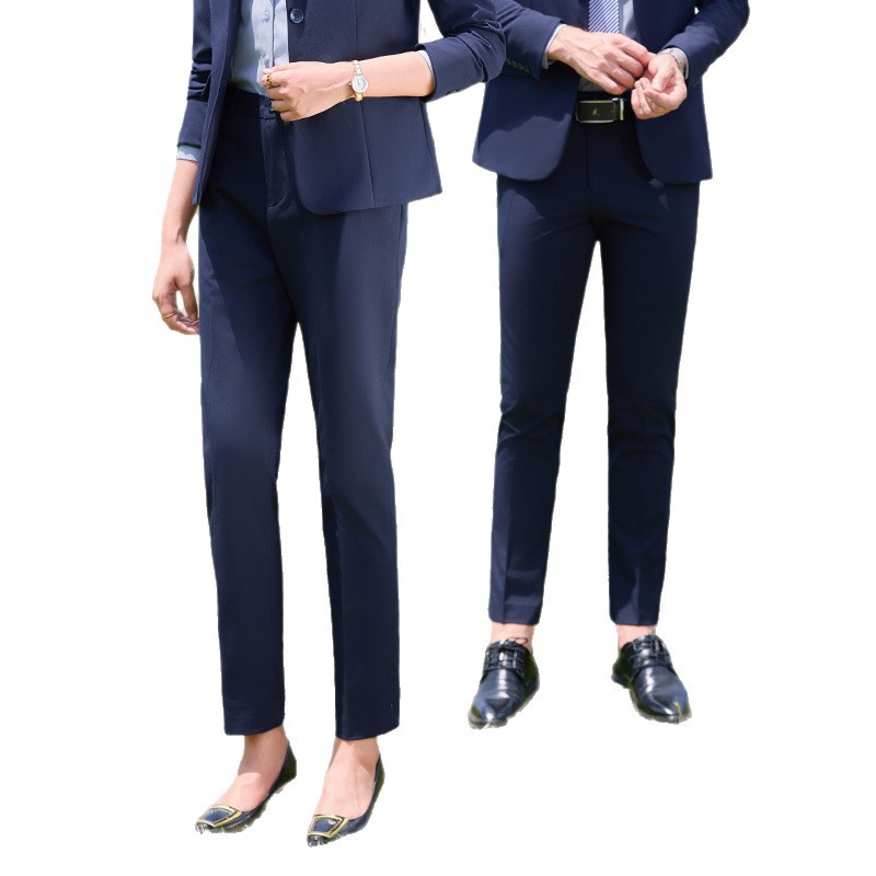 颜色 | 男款深灰色西裤 | 颜色 | 女款藏蓝色西裤 |
