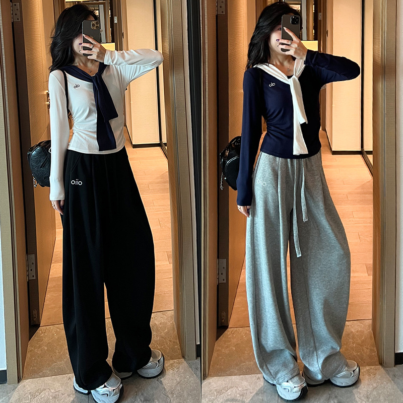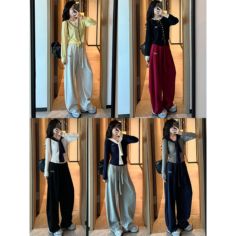 秋冬款刺绣运动裤女宽松阔腿裤窄版直筒香蕉休闲卫裤