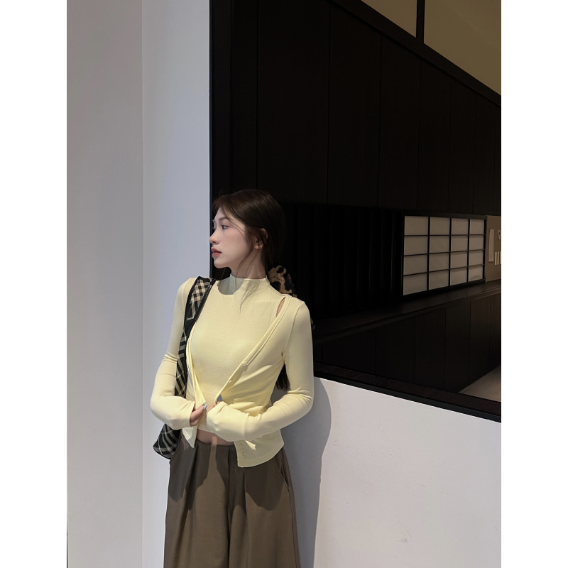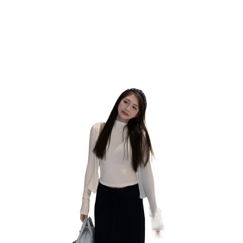 “显瘦真两件”早秋薄款修身显瘦针织开衫+背心两件套