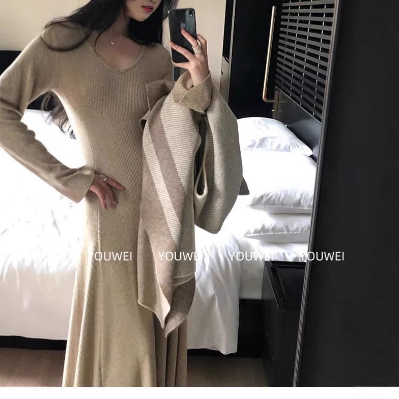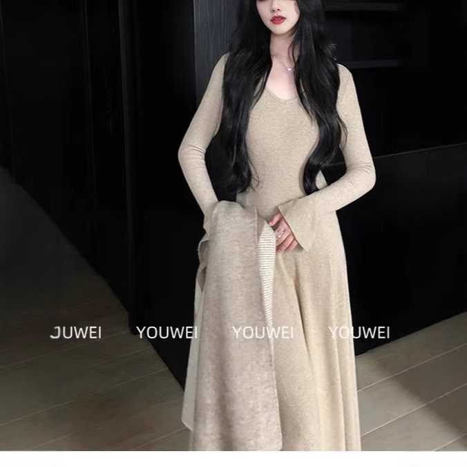 有洧Youwe 长袖打底连衣裙女2025新款秋季高级感内搭显瘦针织裙