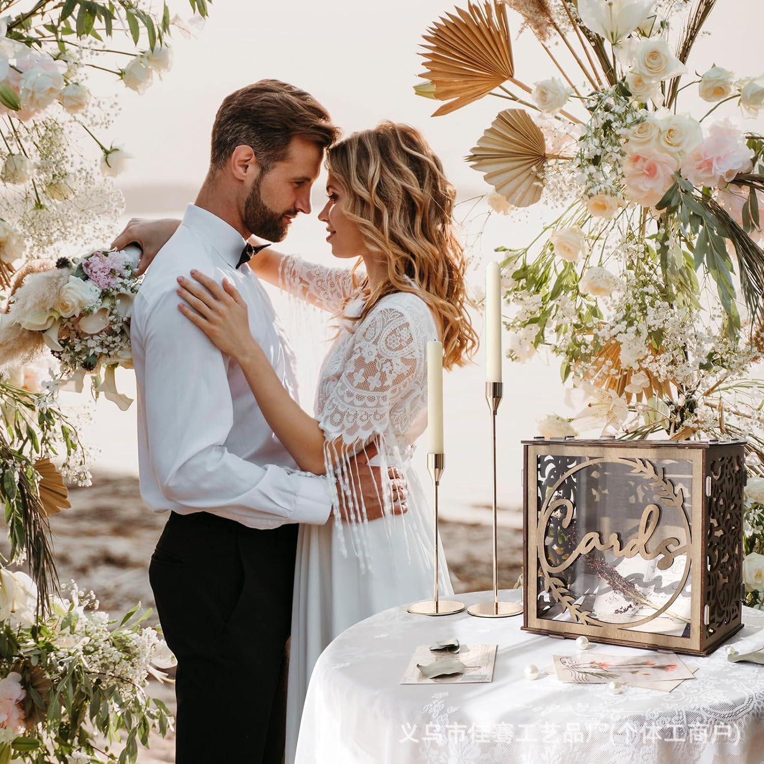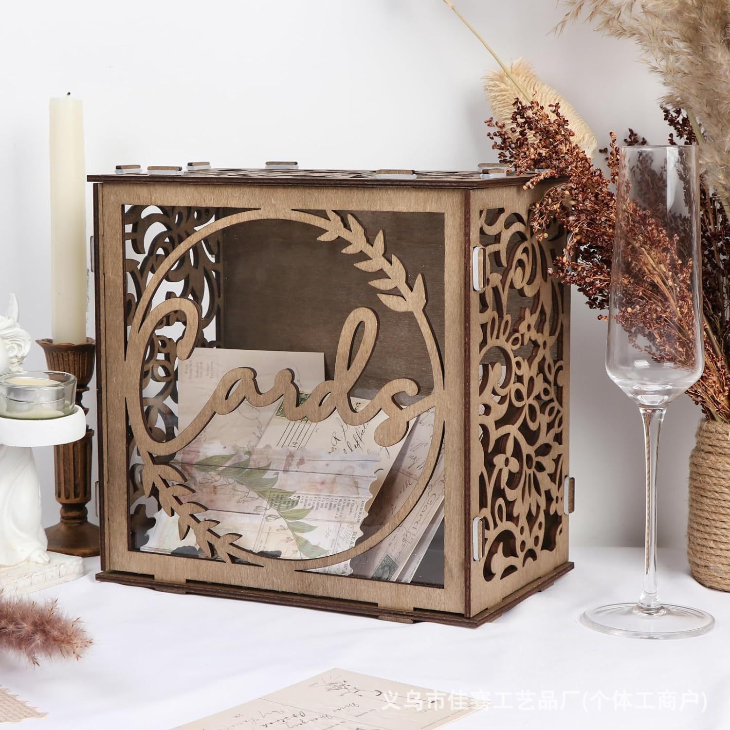 亚马逊爆款木质盒子工艺品木质婚礼签到台名片盒签到箱木质摆件